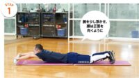 バックエクステンションプル[目安:5回1セット~] うつ伏せでタオルを持ち、腕を伸ばした状態から胸まで引き寄せて背中を鍛えます。腕の力ではなく、背中と肩甲骨まわりを意識して動かすのがポイントです。 背 […]