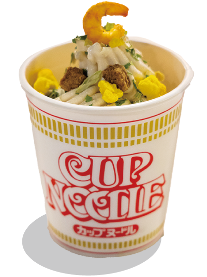 「カップヌードル」のスープの味がする、甘塩っぱいソフトクリーム!具材のザクザクした食感が面白いデザート!