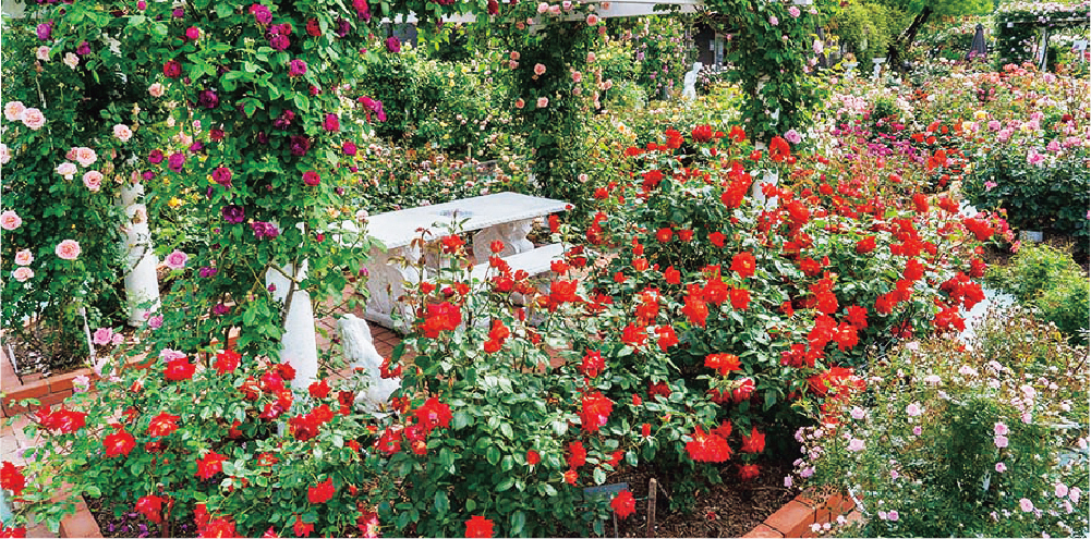 バラの見頃である春と秋に期間限定で開園する「姫路ばら園」。約2,000m2の敷地には、約750種3,300株ものバラが咲き誇り、オールドローズやイングリッシュローズ、世界バラ会議殿堂入りの品種まで、その濃厚な香りと豊かな色彩で訪れる人々を魅了します。