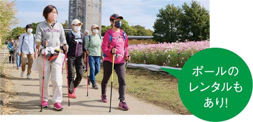 浜名湖を舞台にノルディック・ウォークが体験できるイベント。3km(園内)、5km(遊覧船)7km(雄踏)、13km(東海道)からコースを選び、約40万本のコスモスを眺めながら進みます。ポール無しで歩くのも、もちろんOK。