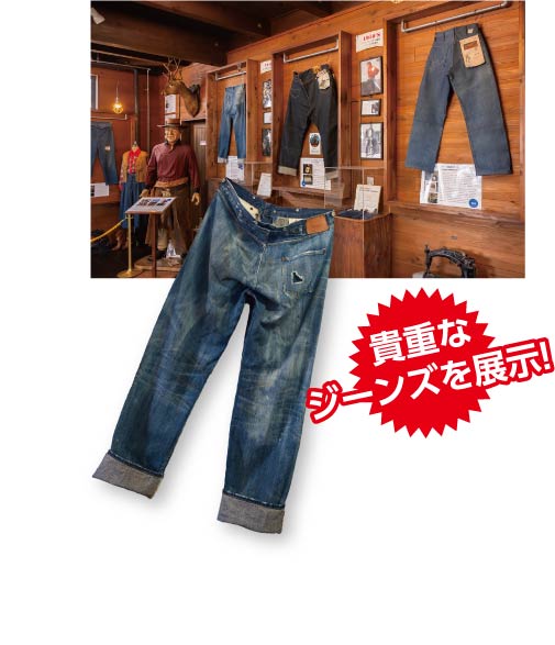 ジーンズミュージアム1号館には、100年以上前に作られたヴィンテージジーンズなど貴重なジーンズや、ミシンなどが展示されています。実物を間近に目にしながら、ジーンズがファッションになるまでの歴史を辿っていきます。