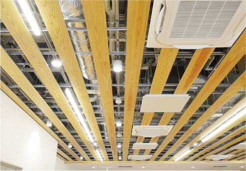 駒津: 化学系の実験がメインですので、それに対応できる造りというのも重要視しました。5種類の特殊ガスの配管をほとんどのラボに設置するにあたり、ドラフトチャンバーのダクトをしっかり通せるよう計算しながら天井埋込型を提案。