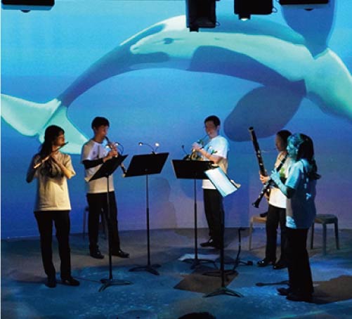 幅約20mのスクリーンと総延床面積約120㎡の床に、広大な海の世界がテーマの映像を投影したデジタルアートの世界。