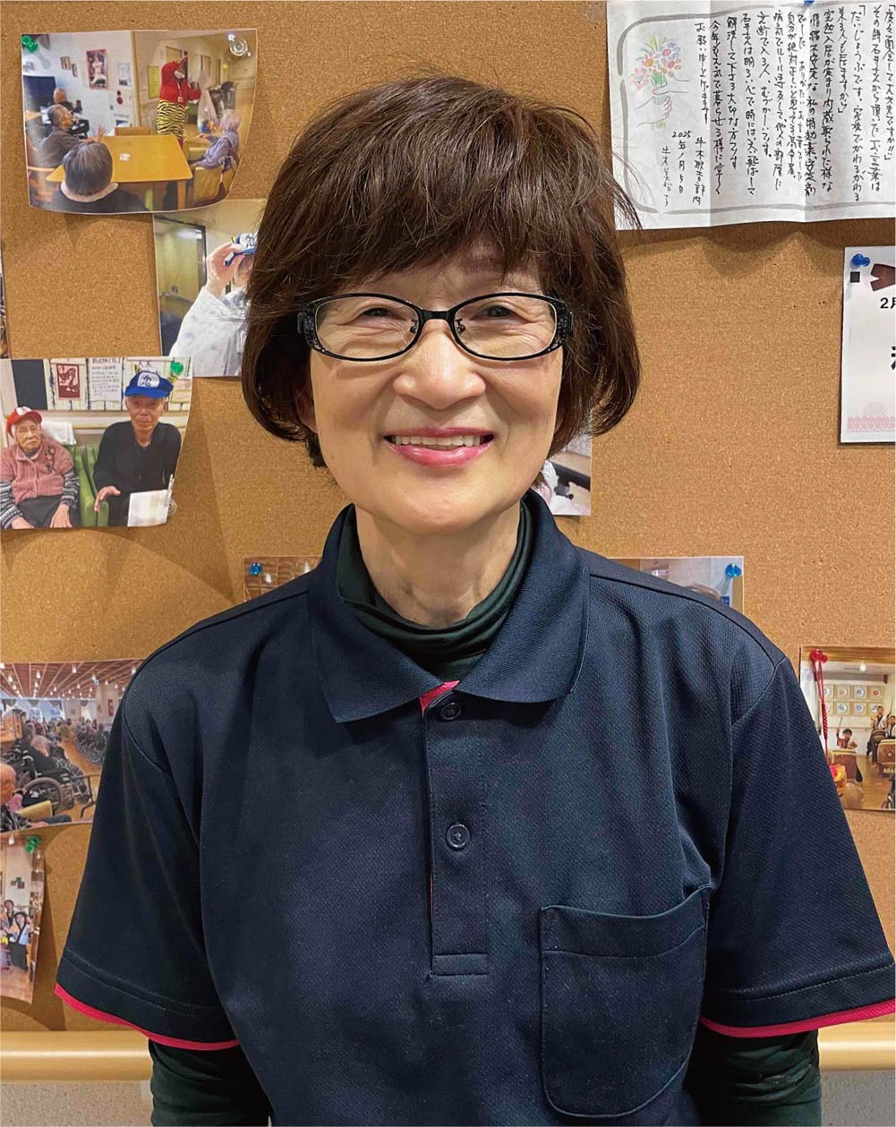 利用者様の人生の歴史を全て把握されています。若い職員にも常に寄り添い、時には厳しく指導してくださる「稲毛の母」と呼べる存在です。