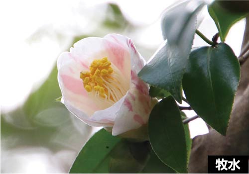 延岡城跡のヤブツバキ群は、学術的に見ても大変貴重と認められています。ツバキ名鑑に載る「延岡」「城山」といった固有の品種のほか、一本の木から白・紅・絞りの三色に咲き分ける珍しいツバキも。園芸的な価値が高い希少な品種も多数楽しめます。
