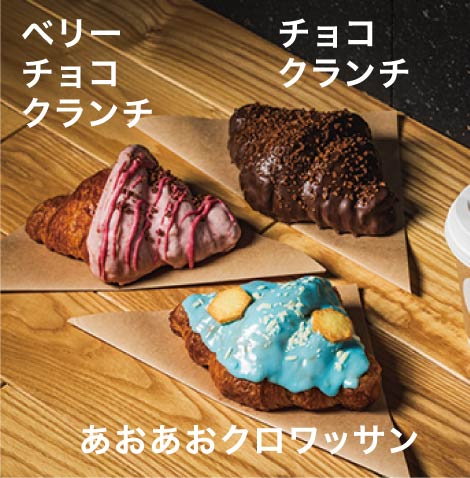 一番人気の「プレーン(税込330円)」に加え、水族館のブルーを基調とした「あおあおクロワッサン(税込480円)」やチキンをミックスした「天然酵母のレモンチキンクロワッサン(税込650円)」などユニークなメニューもいっぱい!!