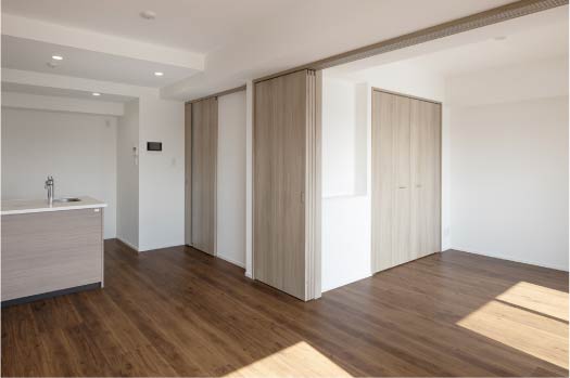 最上階にはルーフバルコニー、1階には駐輪場、各階居住スペースはIOT(※)が標準装備され、バルコニーにはガラス手摺が採用されている事で『非常に明るく、開放的で住みやすい』居住空間となっています。