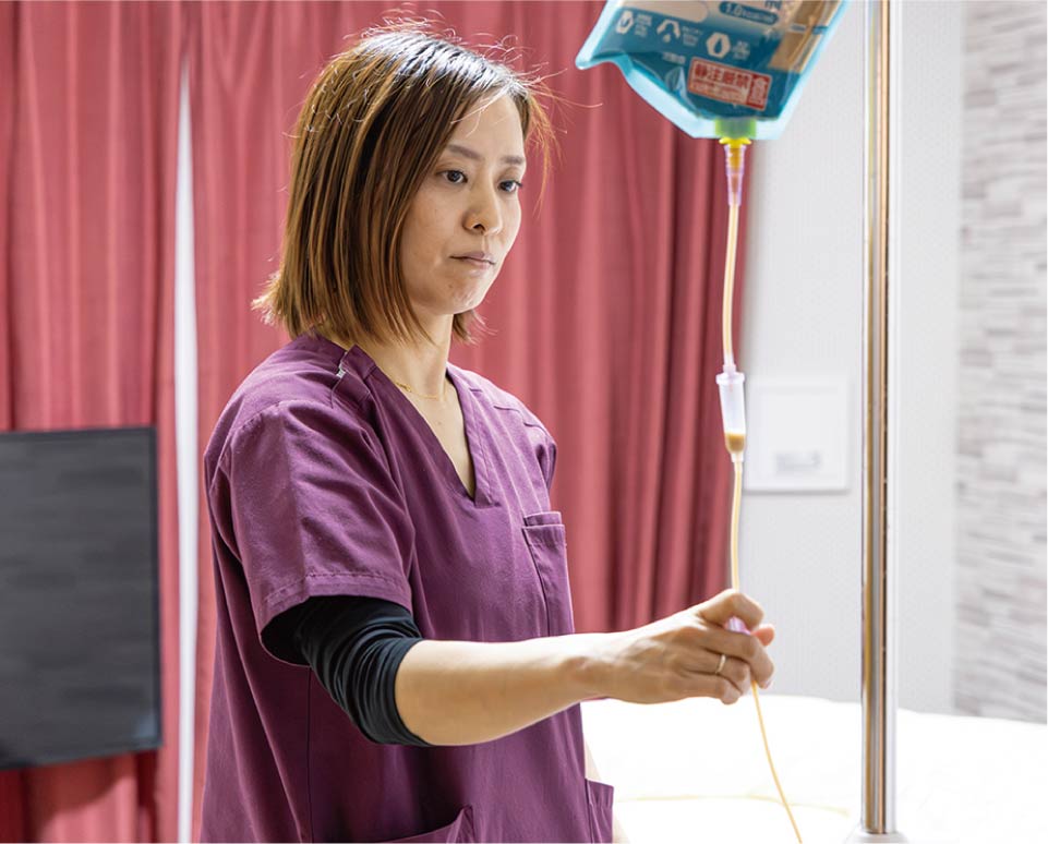 主に入居者様の医療ケアおよび健康管理を行っています。入居者様がその人らしく健康的かつ元気に過ごしていただくためには、医療の視点が不可欠。
