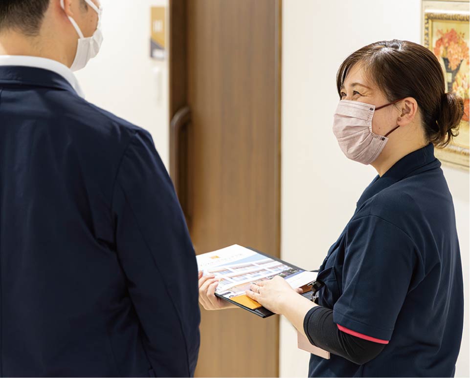 施設見学のご案内やレクリエーションの企画、入居者様やご家族様からのご相談対応などを担当。