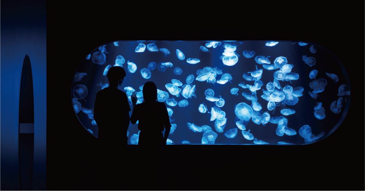 ミズクラゲなどがゆっくりと漂う姿はとても幻想的で、日常を忘れさせるような癒やしを与えます。